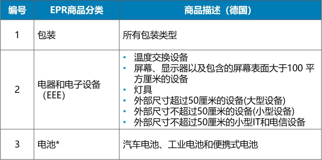 1、德國注冊3個EPR注冊號:包裝、電器和電子設(shè)備、電池